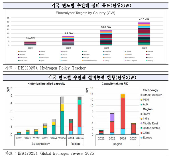 심지어 세부적인 수전해 목표를 제시하지 않은 중국이 수전해 설비 현황의 50% 이상을 차지할 정도로 전 세계적으로 수전해 설비 보급이 지체되고 있음을 확인할 수 있다.