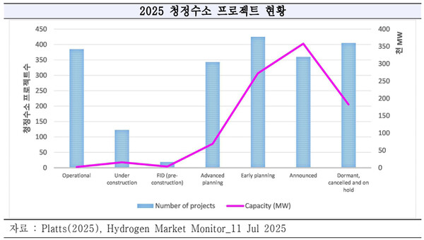 발표된 수소 프로젝트와 정책만 보면 마치 공급이 넘쳐날 것처럼 보이지만 정작 상업 운전 단계까지 가는 사업은 제한적이고, 수요 부족으로 인해 투자 결정(FID)이 지연되거나 축소되는 사례가 반복되고 있다.
