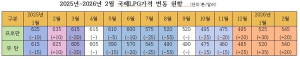 1월 톤당 평균 32.5달러 인상에 이어 2월에도 20달러 오르면서 3월 국내 LPG가격은 인상이 불가피할 전망이다.