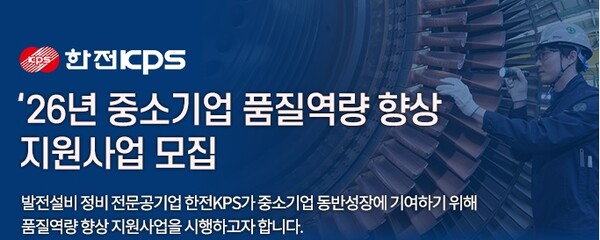 송고일 : 2026-02-02[에너지신문] 한전KPS가 오는 13일까지 2026년 1차 중소기업 품질역량 향상 지원사업 참여희망 중소기업을 모집한다.